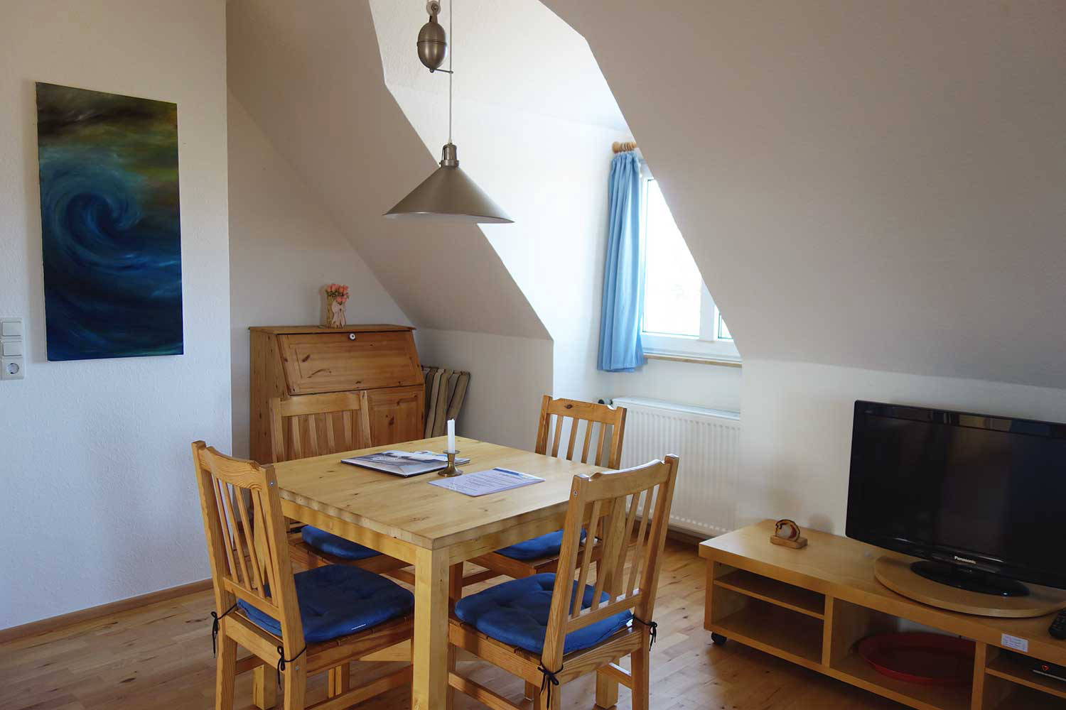 - Die Wohnung hat einen Holzfußboden