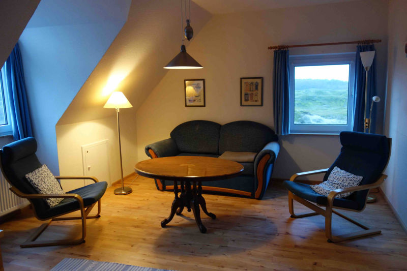 Hier können Sie die Ruhe der Dünen geniessen: Ein zauberhaftes und geräumiges Dünennest für 2 Personen. 2 weitere Personen können auf dem Schlafsofa im Wohnzimmer Platz finden.